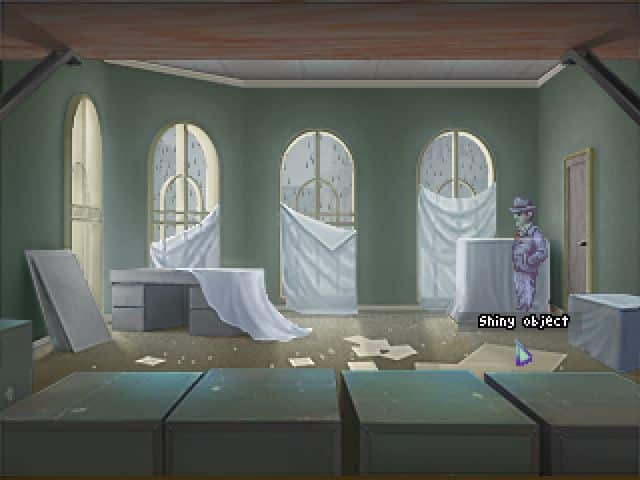 • Zdejmujemy płachtę zakrywającą środkowe okno. Za oknem ujrzymy rękę ducha, na którą oczywiście klikamy.