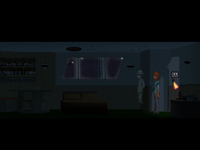- Klikamy na otworze nad łóżkiem i z kabiny z nieznajomym duchem zabieramy leżący na podłodze klucz.