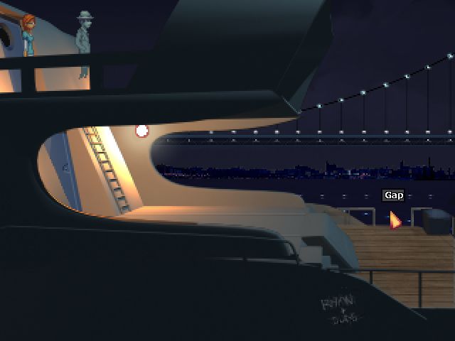 - Opuszczamy kajutę i opuszczamy łódź, klikając na miejsce pomiędzy barierkami (prawa część planszy).