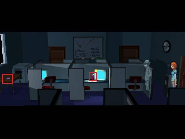 - Znajdziemy się w biurze redaktorów, gdzie interesuje nas środkowe stanowisko. Należy ono do Jeremy’ego. Jako duch, nie jesteśmy w stanie zabrać notesu. Klikamy za to na małej żółtej kartce w lewym górnym rogu monitora. Notatki Rosy powiększą się wtedy o nowy wpis (High Line).