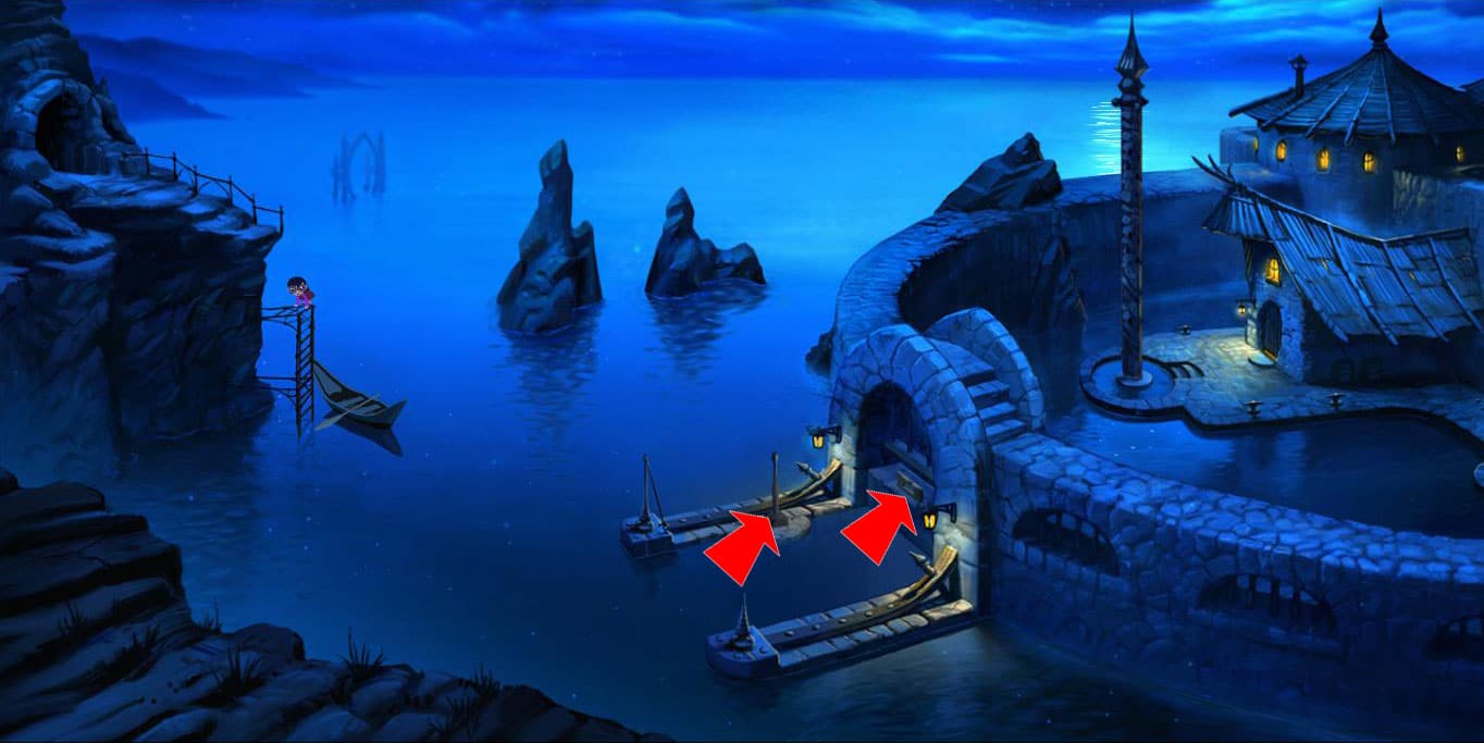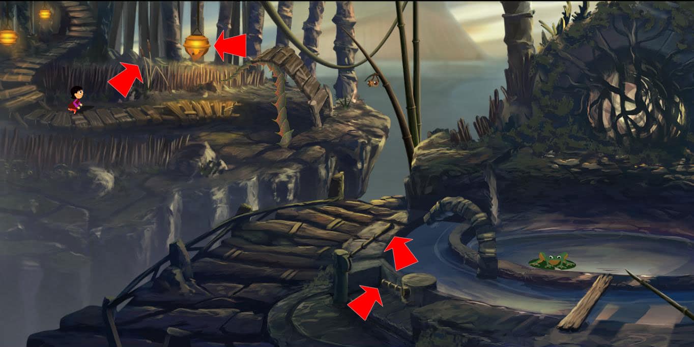 - Przedostań się na półkę skalną obok lampy i biegnij wzdłuż mostu.