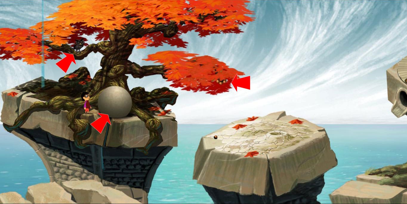 - Przeskocz na gałąź po lewej i zaczep dwukrotnie śpiącą tam sowę.