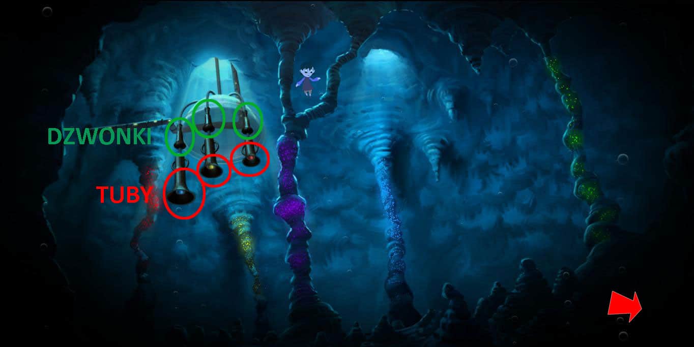 Na koniec pociągnij za linkę od dzwonka niebieskiego. Gogle wpadną do groty pod wodą.