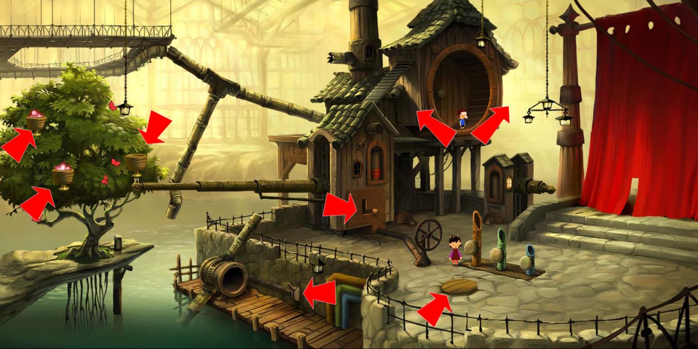 - Kliknij na drewnianą windę, a następnie podnieś czapkę chłopca.