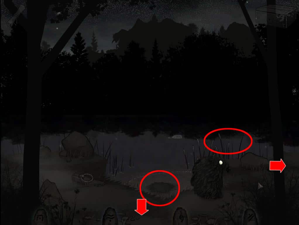 • Zabierz muszlę z ziemi i wróć nad jezioro. Będąc mniej więcej na środku, skieruj się w dół.