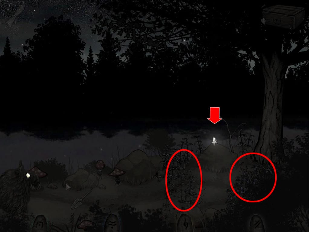 • Wróć teraz na polanę, na której zaczynałeś rozdział. Użyj nożyczek na świecącej roślinie.