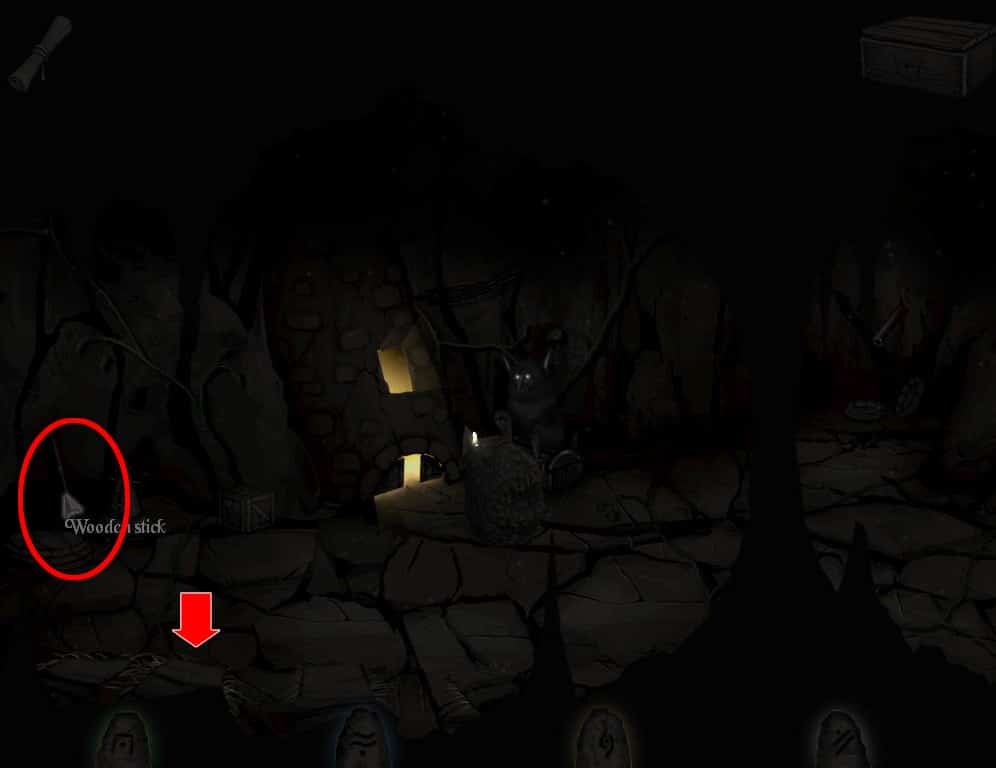 • Użyj na masywnym kamieniu patyka znalezionego w poprzedniej lokacji.
