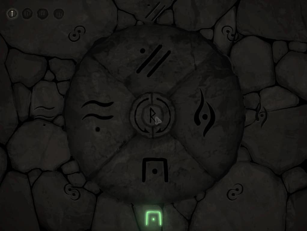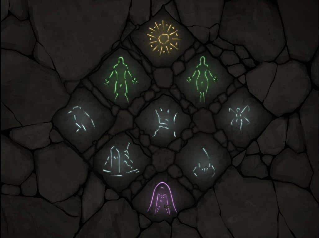 • Spróbuj użyć runy ziemi, jednak nic nie pomoże tym razem. Zerknij więc na płytę widniejącą w ziemi. Czeka nas pierwsza łamigłówka. Symbole na poszczególnych częściach płyty muszą pokrywać się z symbolami widocznymi poza nią.