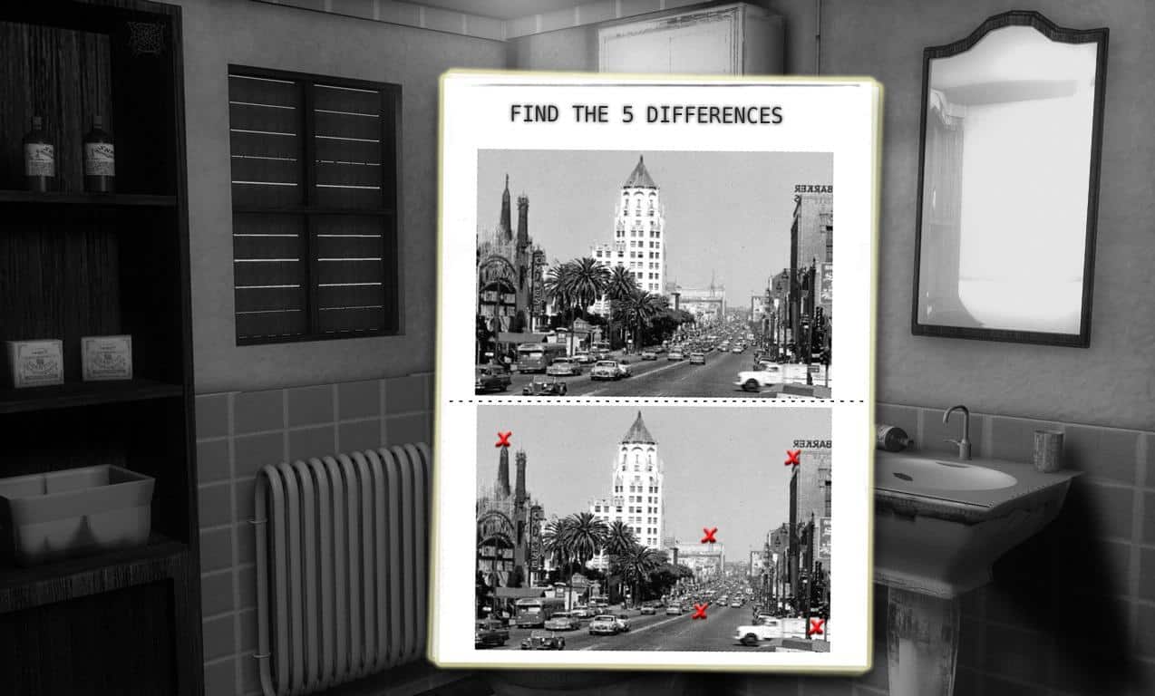 • Za grzejnikiem zaś gazeta. Przyjrzyj się jej i odwróć na tylną stronę. Zagadka – należy znaleźć pięć różnic.