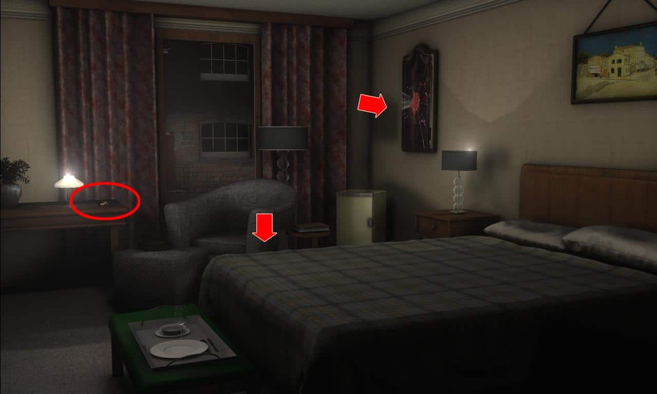 • Zauważysz sejf z kodem, którego rozwiązania należy dopatrywać się na kartce z małego stolika.