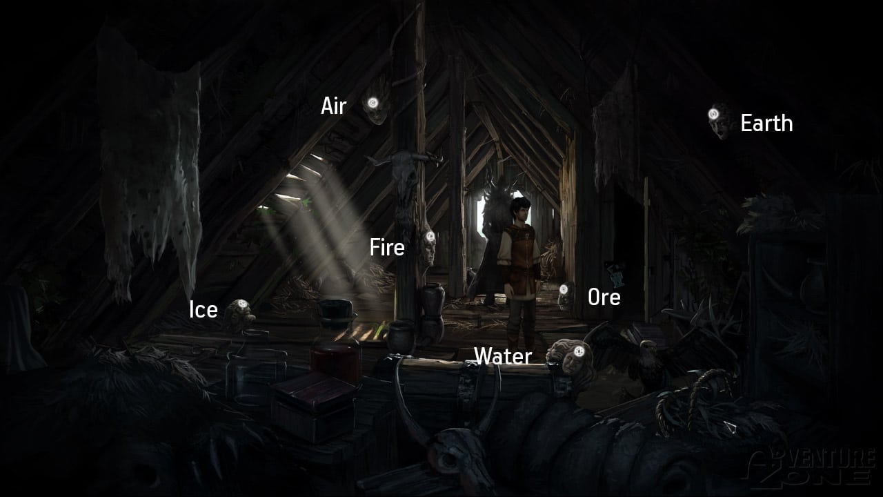 - In your inventory combine the Hammer with Chisel and go Around The Clearing and back to the Stone Pillar behind the tent. Use the Hammer And Chisel on the Mask.