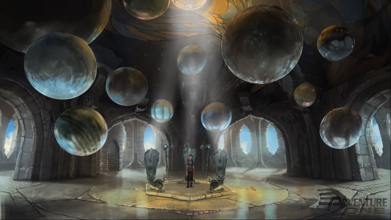 - End the dialogue and lift the Metal Ball laying at the foot of the pedestal. Use it on the Ring and then throw it to the Hole.