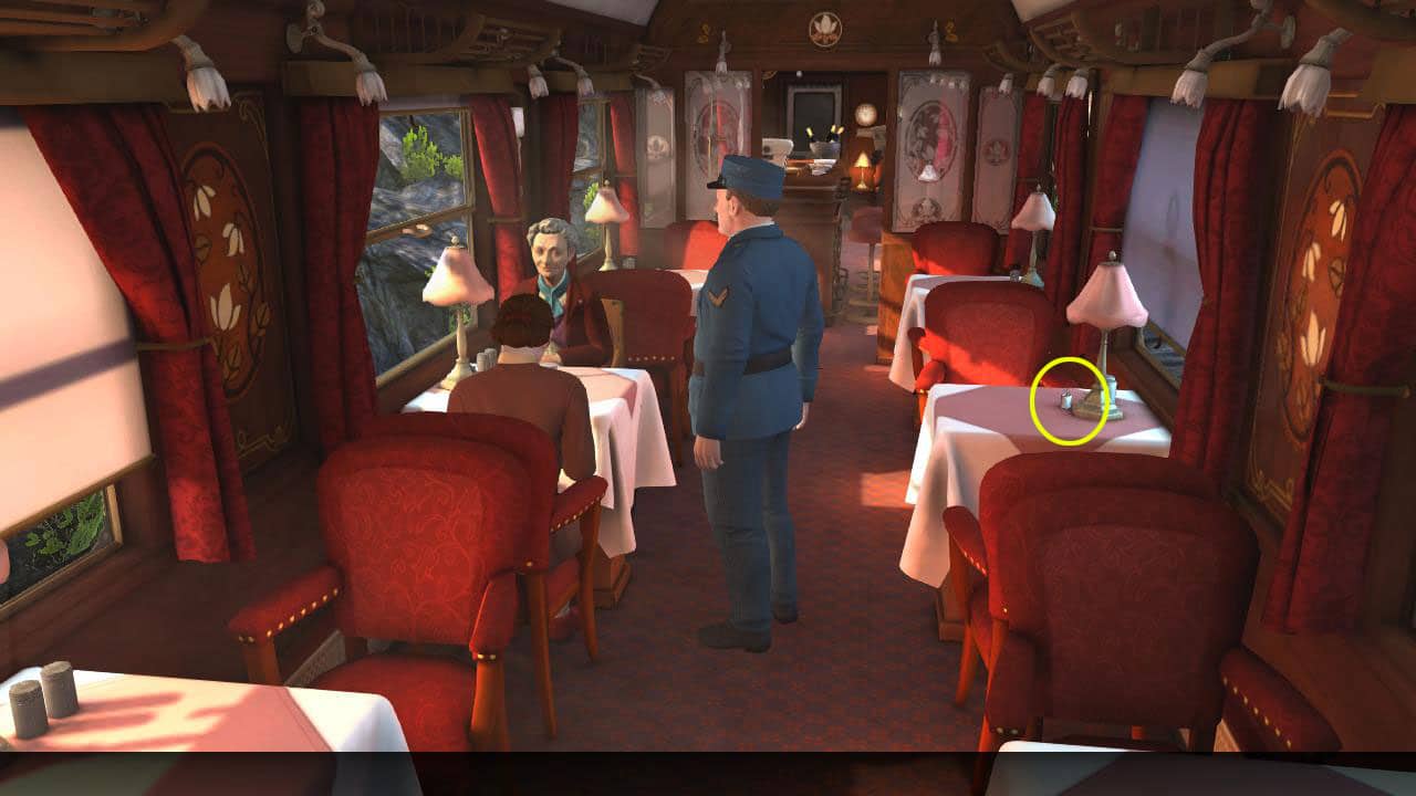 • Przejdź do wagonu restauracyjnego, gdzie spotkasz miłą panią Westmacott. Porozmawiaj z nią na wszystkie tematy.