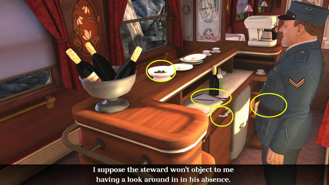 • Wyjdź z przedziału i pogadaj ze służącym stojącym przy gablocie z mapami na końcu wagonu.