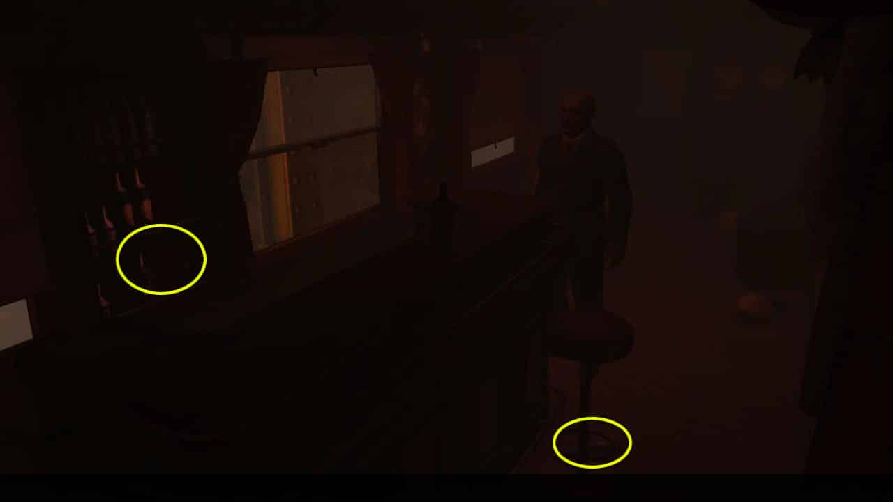 • Przejdź w kierunku baru. Z lady zabierz trochę cukierków oraz ołówek.