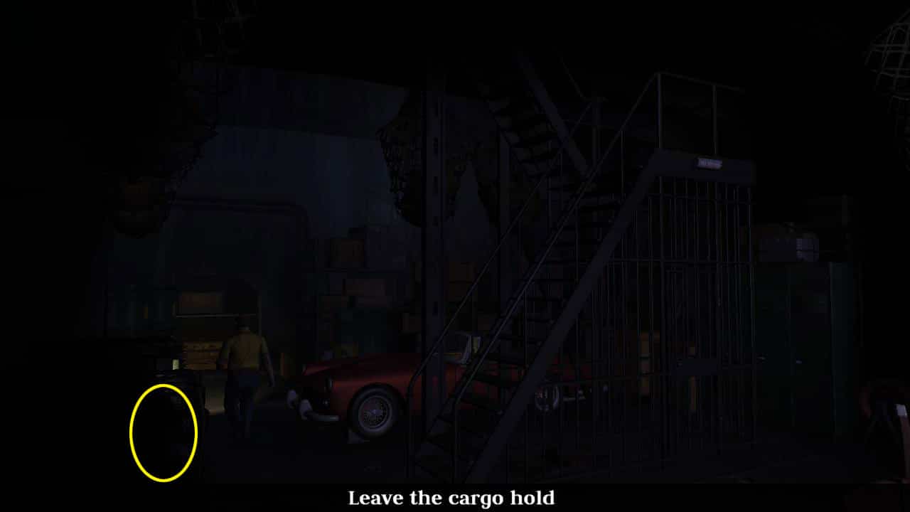 • Kiedy znajdziesz się w ładowni. Zwróć uwagę na cylindryczny przedmiot naprzeciwko ciebie. To latarka. Zabierz ją.