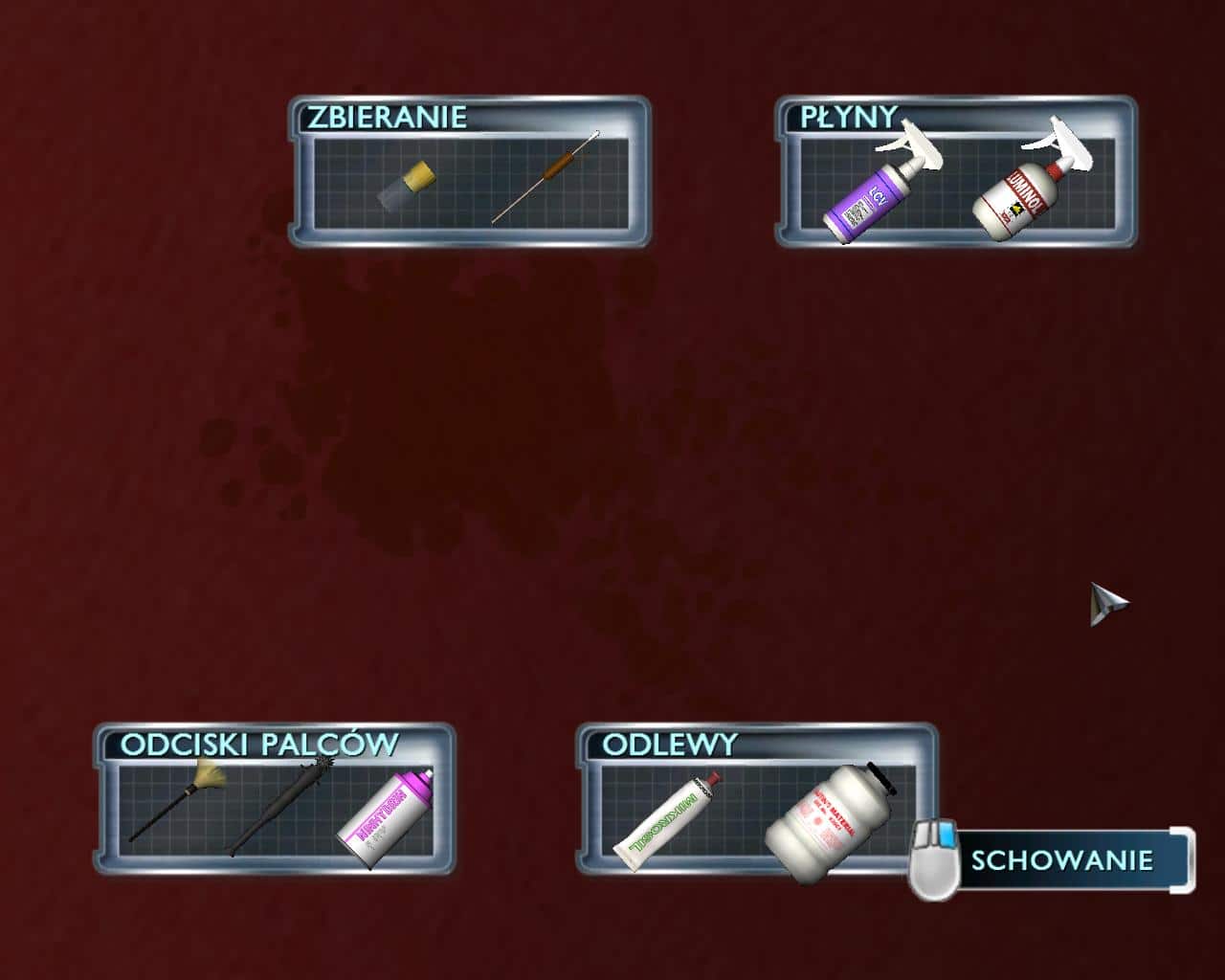 Zamiast więc bawić się w dobieranie odpowiednich zestawów: proszek magnetyczny lub daktyloskopijny a następnie taśma do zdjęcia dowodu, teraz wszystko dzieje się niemal automatycznie: najpierw automatycznie partner CSI pstryknie zdjęcie, a naszym zadaniem jest tylko wybranie odpowiedniej grupy: niezbędne narzędzie zostanie wybrane automatycznie przez zaznaczenie ramką i automatyczne skierowanie kursora. Reszta, jak zebranie próbki po wykryciu płynu czy przeniesienie odcisku na taśmę, dzieje się już w formie animacji.