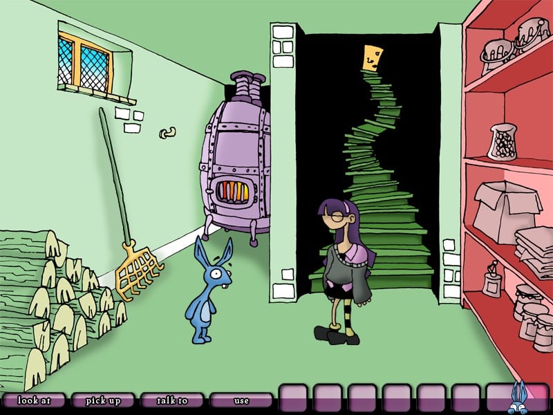 Osobny akapit chciałabym poświęcić fragmentom, które wyróżniają się na tle pozostałych partii. Dotyczą one obietnicy, jaką Harvey złożył pannie Konrad. Królik dysponuje bowiem zdolnością cofania się do przeszłości, gdzie zabiera także swoją towarzyszkę. Edna powraca wtedy do czasów dzieciństwa, żeby przypomnieć sobie ważne wydarzenia z minionych lat. Przy okazji nasza protagonistka uczy się umiejętności potrzebnych do pokonania przeszkód w teraźniejszości. W takich momentach, obie połówki niecodziennego duetu stają się postaciami grywalnymi. Co ciekawe, Harvey nie posiada ekwipunku w ścisłym tego słowa znaczeniu, a zgromadzone w jego inwentarzu obiekty pełnią rolę tematów rozmów. Szkoda tylko, że owe podróże odbędziemy zaledwie trzy razy w ciągu około dziewięciogodzinnej rozgrywki.
