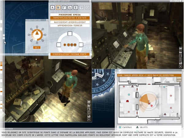 Cała gra opiera się na niesamowitym, przełomowym – co podkreślałem wcześniej – pomyśle zamiany ról. Główny bohater sterowany jest przez komputer, natomiast nasza rola sprowadza się do operowania wszystkimi innymi elektronicznymi i podłączonymi do sieci, urządzeniami. Stajemy się wirtualnymi reżyserami, którzy widzą świat gry, ale nie mogą na niego prawie w ogóle wpłynąć. Przynajmniej nie bezpośrednio. Na samym początku poznajemy Leę i uczymy się z nią komunikować. Jest to możliwe za pomocą odpowiednich ruchów kamery. Pionowe kiwnięcia to „tak”, a poziome to „nie”. Podobnie ma się sprawa z pokazaniem jej, gdzie ma się udać. Zapalamy odpowiednie kamery, światełka, ewentualnie dzwonimy jakimś telefonem czy włączamy komputer i nasza bohaterka idzie we wskazanym kierunku. Brzmi ciekawie? Jakby tego było mało, możemy włamywać się do systemu, przeglądać pliki, sterować małymi robotami, otwierać drzwi z zabezpieczeniami czy oglądać materiały wideo. Pole manewru mamy olbrzymie i praktycznie nic nas nie ogranicza. Wszystko co jest podłączone do sieci, jest w naszym władaniu. Pomysłowość twórców jest ogromna. Po pewnym czasie dostaniemy możliwość operowania kamerami z funkcją noktowizji i termowizji, co znacznie rozszerzy nasze możliwości. A wszystko w jednym celu – aby poczuć się jak prawdziwy geniusz komputerowy, mogący wpływać na wszystkie urządzenia na statku.