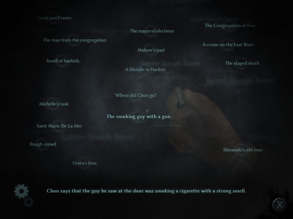 Miłośnicy wyzwań bardziej manualnych czy też logicznych nie powinni narzekać na brak rzeczy do roboty. Tego typu zagadek jest od groma, w postaci otwierania zamków czy też sejfu, na różnych puzzlach skończywszy. Przyjemność z ich rozwiązywania skutecznie jednak zabija chirurgiczna precyzja, która jest przy nich wymagana. Dodajcie jeszcze do tego niezgrabne sterowanie w stylu Amnesia dla ubogich, a o frustrację naprawdę nietrudno. Żeby jednak nie było, że tylko ganię, Face Noir ma jeden ciekawy aspekt, a mianowicie tryb łączenia faktów. W niektórych momentach gry Jack może się skoncentrować i próbować wyciągnąć wnioski z różnych poszlak zgromadzonych podczas śledztwa, co pomaga popchnąć fabułę do przodu. Całkiem interesujący patent.