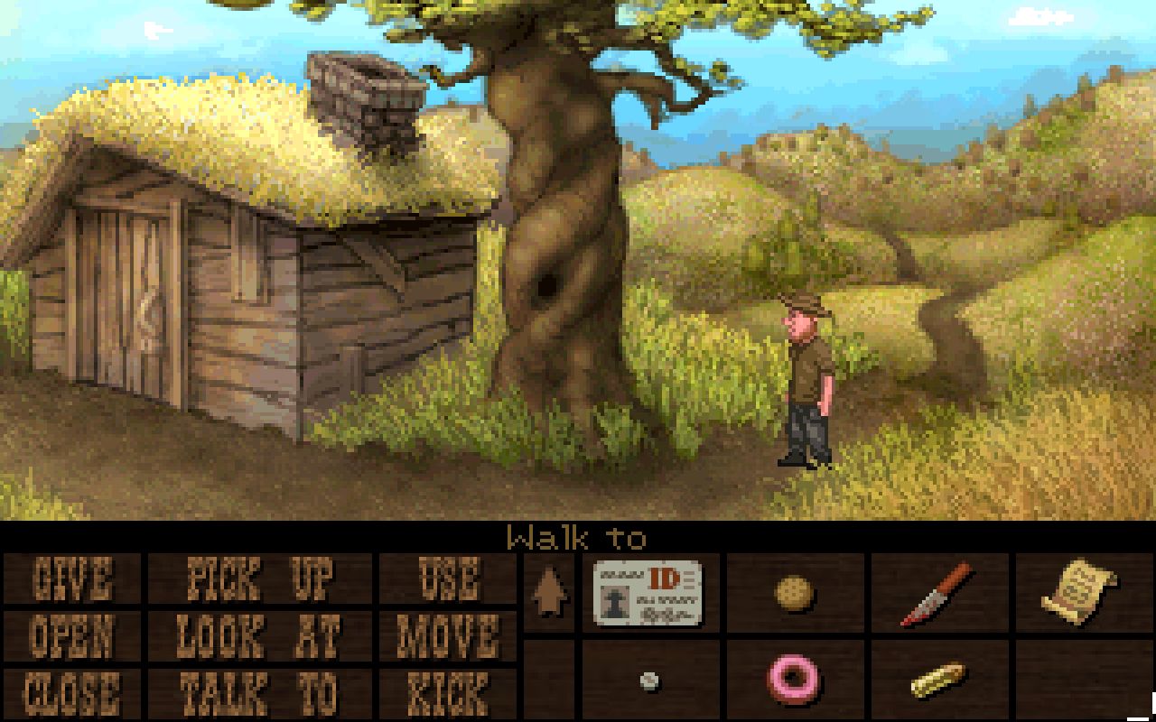 Na początku rozgrywki, gra wita odbiorców informacją, iż została zrealizowana jako wyraz szacunku dla tzw. złotej ery przygodówek. Inspirację produkcjami z tamtego okresu widać już na etapie interfejsu. U dołu ekranu umieszczono bowiem znane ze starych point and clicków menu. W lewej części panelu umieszczono listę czynności (oglądanie, podnoszenie, otwieranie, przesuwanie itd.), natomiast w prawej wyświetla się zawartość ekwipunku. W celu wykonania danej akcji, kierujemy kursor na odpowiedni guzik w owym menu, a potem klikamy na obiekcie naszych działań na planszy lub wewnątrz inwentarza. Pożądane czynności możemy również wybierać przy użyciu klawiszy na klawiaturze, lecz wygodniej posługiwało mi się myszką. Z recenzenckiego obowiązku muszę jeszcze odnotować wykorzystanie prawego przycisku gryzonia. Klikając nim na przedmiocie bądź osobie, uaktywnimy akcję, której teoretycznie powinniśmy najbardziej potrzebować. W praktyce powyższa opcja okazała się nieprzydatna, gdyż dokonany przez program wybór nie zawsze pokrywa się z oczekiwaniami gracza.