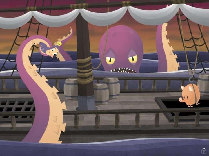 Zadania, jakim musimy stawić czoła, są zatem generalnie proste. Niektóre z nich nazwałabym wręcz banalnymi. Poza tym w razie problemów nikt nam nie broni skorzystać z zawartego w grze systemu pomocy. A na czym on polega? Otóż na każdej planszy, w prawym dolnym rogu widnieje niewyraźny znak zapytania. Po jakimś czasie staje się on w pełni widoczny. Wtedy możemy na niego kliknąć, żeby otrzymać podpowiedź w postaci obrazka. Mimo wszystko trafiają się też wyzwania, które potrafią nieco dać w kość. Do tego typu momentów należy zaliczyć to, co przygodówkowicze nienawidzą najbardziej. Z pewnością zdążyliście się domyślić, iż chodzi mi o elementy zręcznościowe. Niestety czasami przyjdzie nam przetestować refleks i szybko wykonać pewne czynności, m.in. w trakcie eliminacji niektórych bossów. Takie fragmenty niewątpliwie wydłużają rozgrywkę, zwłaszcza jeżeli z Hamletem zetkną się nieobyte z nimi osoby. Jednak co z tego, skoro grę ukończymy maksymalnie w około dwie godziny? Szkoda, że twórca nie pokusił się o rozbudowanie swojego projektu, bo mógłby on na tym naprawdę wiele zyskać.