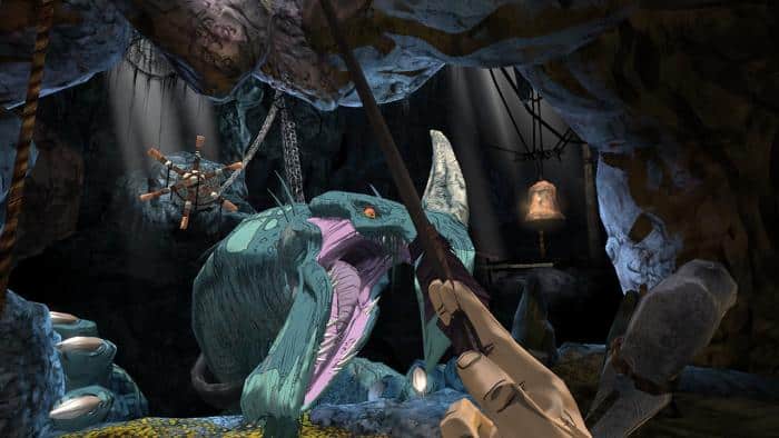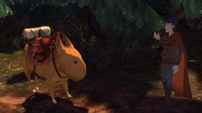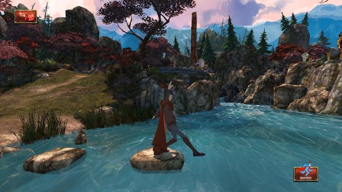 Są dwa aspekty, które szczególnie urzekły mnie w tej reimaginacji King’s Quest. Pierwszym z nich jest połączenie cell-shadingu, który już sam w sobie wygląda bardzo kreskówkowo, z elementami 2D. Przynajmniej wydaje mi się, że są to elementy 2D, bo wyglądają na zupełnie płaskie. Razem tworzą idealną mieszankę. To jest właśnie to, czego brakowało mi w innych grach mających przypominać telewizyjne animacje. Płaskości. Nie jest tego dużo, ale robią dużą różnicę wszędzie tam, gdzie się pojawiają.