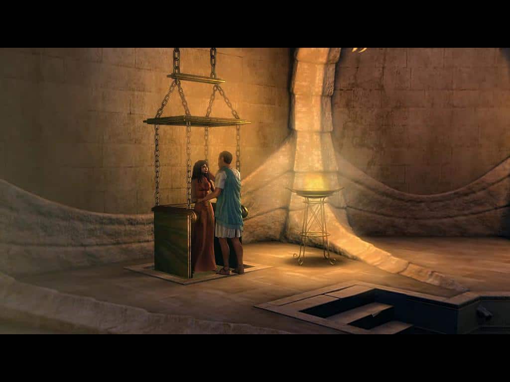 Jak już wspomniałam, Kleopatra ma fascynująco głęboki głos, który w pałacu, będącym naprawdę fajnym menu, brzmi majestatycznie odbijając się od ścian ogromnego pomieszczenia. Jedyny lektor, który wprawił mnie w pewną konsternację, to ten odpowiadający za udźwiękowienie Tomasza: chłopczę ma wygląd najwyżej dwudziestokilkuletniego faceta, natomiast głos wydaje się co najmniej „potrzydziestkowy”. Nie wiem, która wersja jest właściwie właściwa 😛 Muzyce nie mam nic do zarzucenia. W pierwszej lokacji – posiadłości ze sporym ogrodem – słyszymy przede wszystkim wodę przelewającą się leniwie w strumyku. Mamy kilka melodyjek, czasem okraszonych odrobiną stylowego wokalu przypominającego mistyczną Loreenę McKennitt.