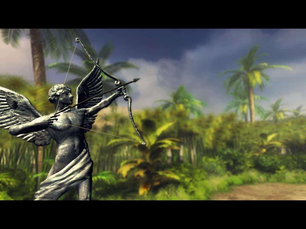 Taki zestaw kolorów dokładnie odpowiada mi „nadmorskim” przygodówkom Kheopsa : Powrót na Tajemniczą Wyspę oraz Kurs: Wyspa Skarbów. W „Kleopatrze” również patrzymy z perspektywy pierwszoosobowej, poruszamy się węzłami, grafika jest 2,5 wymiarowa. Nie ma przeskoku technologicznego, wszystko prezentuje się po prostu ładnie i ciekawie; zresztą nie było za bardzo nad czym pracować. Wszystkie lokacje zostały wymienione już na pudełku (jednak sprytnie wskazując, jakoby to miały być jednymi z wielu 😉 ): posiadłość Akkada (dom i ogród), Biblioteka Aleksandryjska, Latarnia Morska na wyspie Faros oraz pokazana w filmikach komnata królowej, znana z menu.