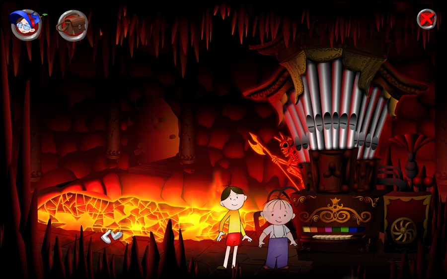 Wymiar lokacji. Ten aspekt zdecydowanie kuleje, np. w ogrodzie. Trzeba w pewnym momencie podejść do fontanny, która stoi na bliższym planie. Chłopcy będą przechodzić na niego tylko z jednego miejsca. Z kolei gdy będziemy na kładkach, które mają po trzy poziomy, bohaterowie będą idealnie odczytywać nasze zamiary. Nie trzeba bohatera kierować dokładnie do zejścia i stamtąd dopiero w lewo bądź w prawo. Wystarczy iż od razu klikniemy w miejsce gdzie chcemy aby trafił. Trafił, ponieważ na raz poruszamy się tylko jedną postacią. Gdy skorzystamy z przejścia do innej lokacji, drugi chłopak znajdzie się tam automatycznie.