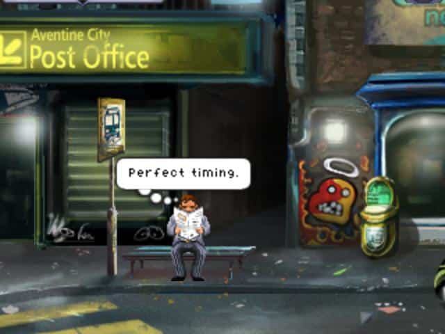 Grafika jaka jest, każdy widzi. Resonance został wystylizowany na przygodówkę z wczesnych lat dziewięćdziesiątych i albo to komuś przypadnie do gustu, albo nie. Szczerze mówiąc, tego typu oprawa graficzna bardziej przemówiła do mnie w Gemini Rue, co jednak wcale nie znaczy, że Resonance jest grą brzydką. Warto docenić chociażby małe detale włożone do tła typu grafitti. Postaciom ani ich animacji też nie można nic zarzucić.