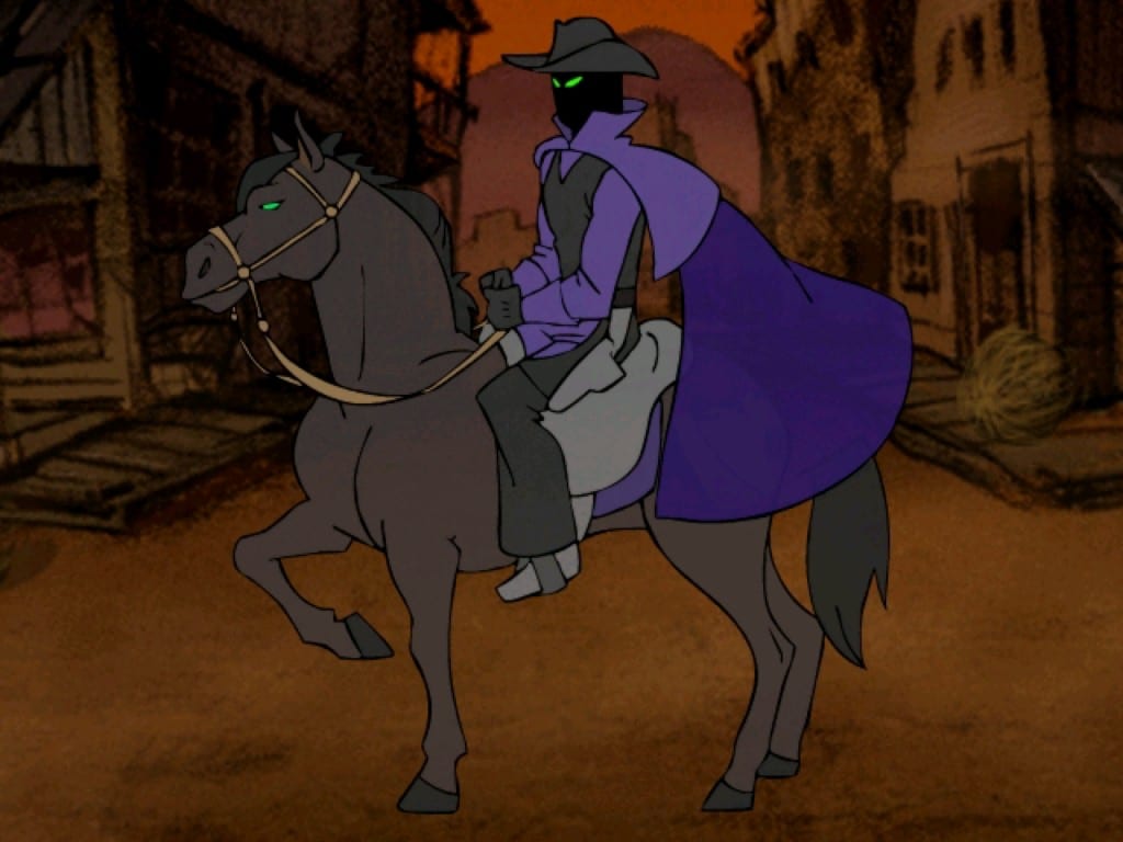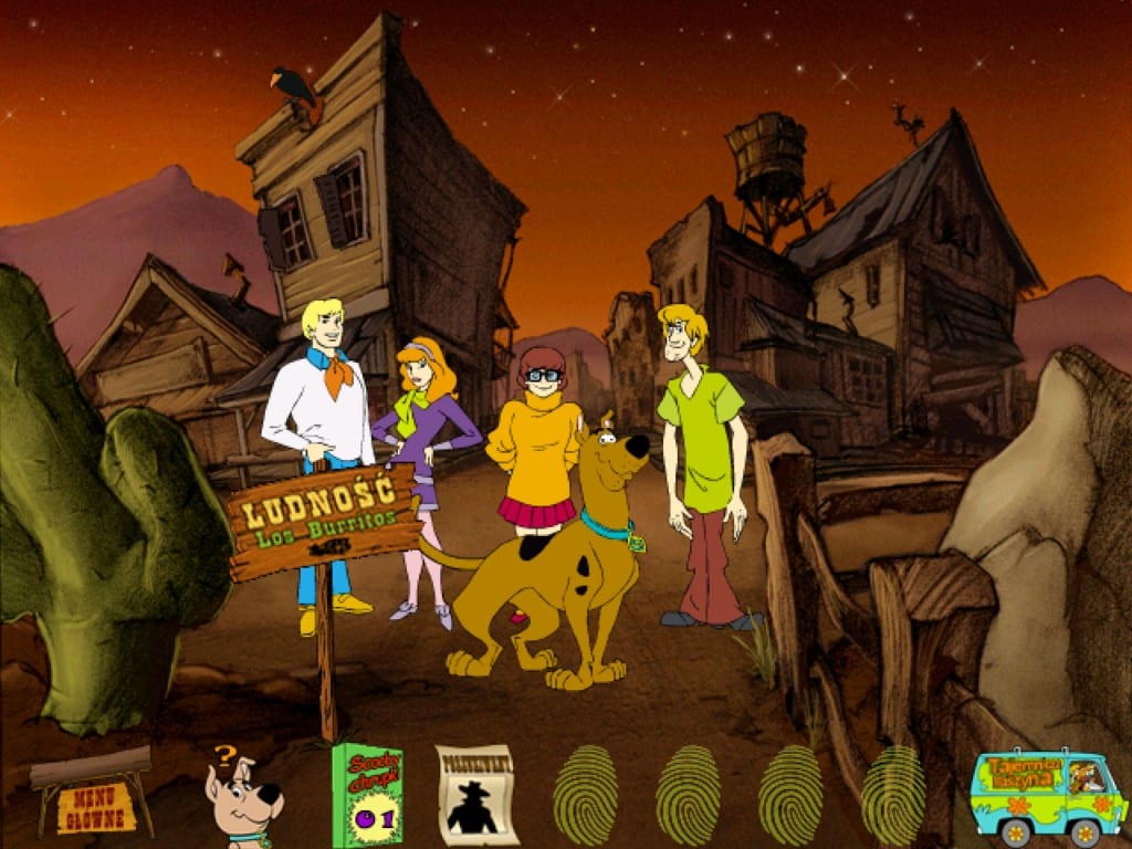 >Gdzieś na Dzikim Zachodzie Zgodnie z kanonem klasycznym już dla znanej kreskówki Hanna-Barbera cała historia zaczyna się niewinnie. Fred, Daphne, Velma, Kudłaty i oczywiście Scooby-Doo podróżują swoją Tajemniczą Maszyną przez bezdroża Dzikiego Zachodu. Zbliża się noc, Kudłatemu i Scoobiemu jak zwykle burczy w brzuchach więc przyjaciele postanawiają zrobić postój w miasteczku o obiecującej nazwie Los Burritos. Szybko jednak okazuje się, że na miejscu zamiast smacznego posiłku i ciepłego łóżka czeka na nich kolejna zagadka detektywistyczna do rozwiązania z tajemniczym widmowym Jeźdźcem bez Twarzy w roli głównej