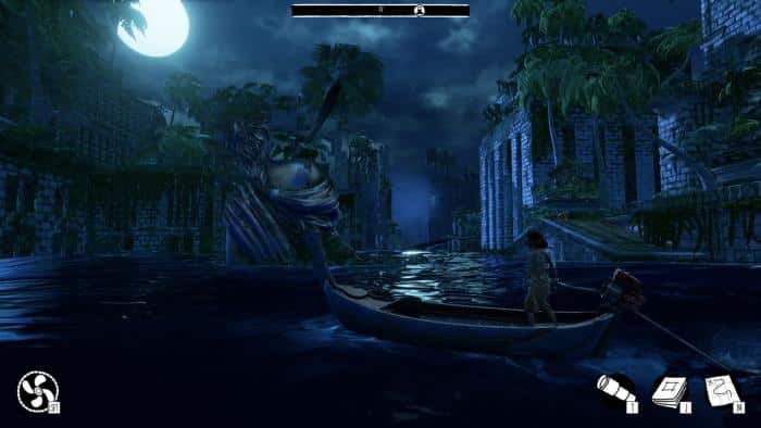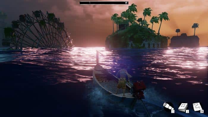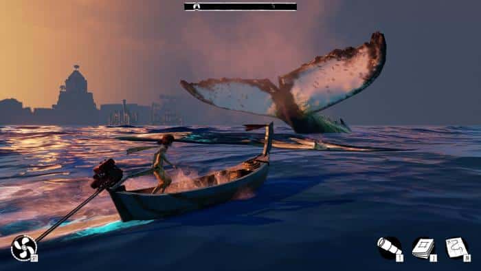 Kogo jednak obchodzi co tu się właściwie dzieje, mamy misję i na tym trzeba się skupić. Codziennie wyruszamy naszą niezniszczalną łódeczką w poszukiwaniu zapasów i czy od razu na nie natrafimy, czy też poszukiwania zajmą nam kilka dni, spać pójdziemy dopiero, gdy będzie z czym wrócić. Każda znaleziona paczka zaopatrzeniowa wyznacza kamień milowy postępów w grze, którą ukończymy odnajdując je wszystkie. Dodatkowo możemy zająć się zbieraniem wspomnianych już dzienników, kart ze stworzeniami (pojawiającymi się, gdy na jakieś się napatoczymy) oraz kart bardziej charakterystycznych budowli. Nazywam to kartami, chociaż tak naprawdę są to kwadratowe obrazki, często przedstawiające dość abstrakcyjny wygląd danej rzeczy, a już szczególnie w przypadku historii miasta. Są również usprawnienia naszej łódki, które wydłużą czas możliwego do użycia przyspieszenia. Znajdziemy je we wrakach innych łodzi, z których większość można odnaleźć zwiedzając miasto (reszta chowa się w zaułkach).
