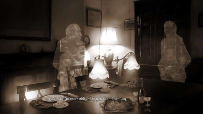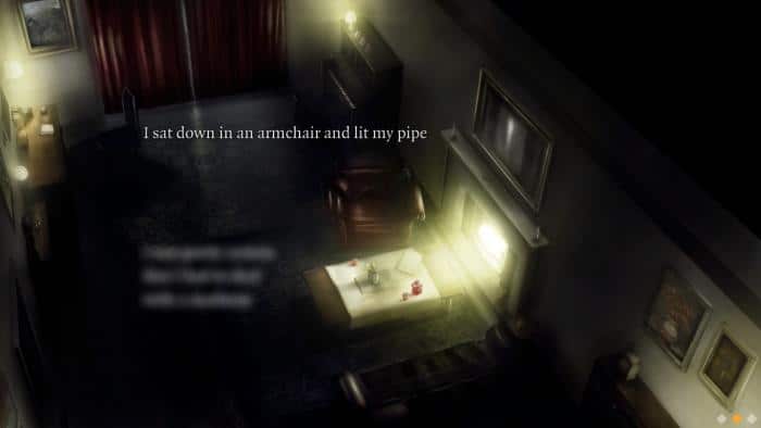Nie jest to jednak jedyna forma przedstawienia opowieści. Wszystkie dialogi są dubbingowane, a co jakiś czas obejrzymy niemy filmik z podkładem muzycznym, który zwizualizuje nam wydarzenia o jakich słyszy nasz bohater – Richard Hannay. Do tego mniejsze czynności jak otwieranie drzwi, czy nalewanie płynu do szklanki, wymagają wykonania kilku ruchów. Na tablecie będziemy kręcić kółka i kreślić linie za pomocą palca. W innym przypadku trzeba ograniczyć się do myszki. Dobry sposób na urozmaicenie „rozgrywki”, jeśli tak można określić śledzenie historii 39 steps.