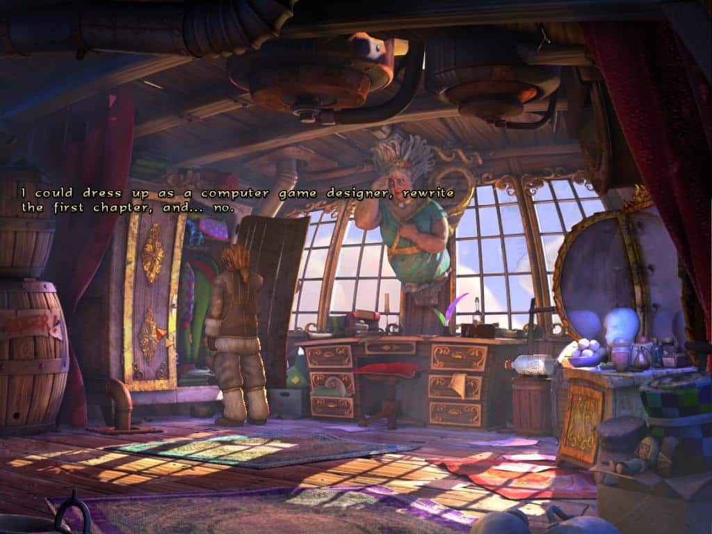 Taki jest generalnie zarys całej intrygi rozłożonej na pięć rozdziałów. Po ukończeniu The Critter Chronicles wiem już przynajmniej dlaczego twórcy nazywają go „samodzielnym dodatkiem”, a nie pełnoprawną grą. Pod względem długości nie ma co liczyć na epicką podróż rodem z TBoUT, którego ukończnie trwało około 15 godzin. Przejście całości na normalnym poziomie trudności zajmuje średnio jakieś siedem, góra dziesięć godzin. Na poziomie trudnym, który liczy sobie więcej zagadek i mniej podpowiedzi – niewiele więcej. Jest to całkiem przyzwoity czas, ale jednak chciałoby się więcej. Wprawdzie historia nie porywa, pozbawiona jest jakiś większych zwrotów akcji i niemal od początku wiemy jak wszystko się skończy (w końcu to prequel), to jednak siła tej przygodówki nie tkwi wcale w fabule, lecz w humorze. Podobnie jak w „podstawce” mamy tutaj zatrzęsienie żartów oraz nawiązań do popkultury, które czasem są subtelne jak piła łąńcuchowa. Fani Gwiezdnych Wojen, Star Treka albo Harry’ego Pottera na pewno bez problemu dostrzegą różne smaczki. Bawimy się tu nawet portalami! Glados byłaby dumna. Albo i nie, kto ją tam wie… W każdym razie, czwarta ściana* już dawno nie była tak ochoczo roztrzaskiwana jak w The Critter Chronicles. Warto zwrócić uwagę również na pingwiny, które są zdecydowanie mistrzami drugiego planu. Od samego patrzenia na nie można dostać śmiechawki. Przy okazji – pamiętacie flashową gierkę „Annoy the Penguin”? Tak, tego motywu tutaj również nie zabraknie…