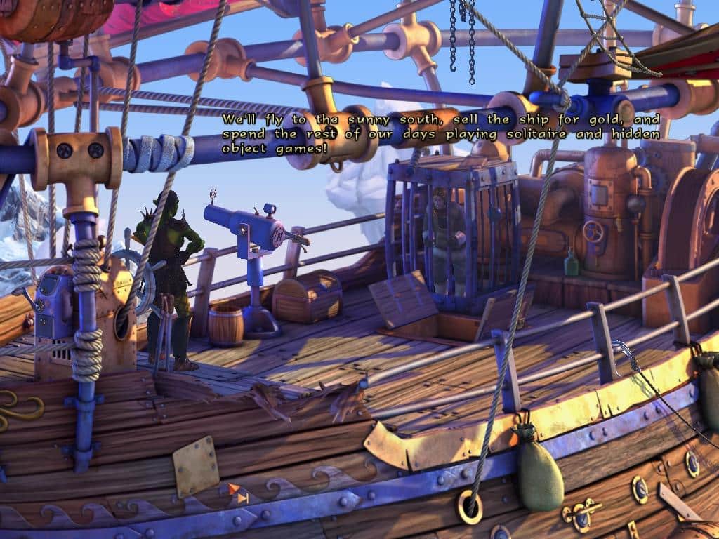 Gdy po raz pierwszy spotykamy Nate’a, jest on w kłopotach po same uszy, co w sumie stanowi u niego stan permanentny. Udało mu się wygrać w karty statek powietrzny Mary od jednego pirata i choć póki co ledwo odróżnia ster od burty, to jest dobrej myśli. Zapomniał tylko o małym szczególe: podczas gry oszukiwał jak najęty, więc teraz po piętach depcze mu znana już z The Book of Unwitten Tales orczyca-najemniczka Ma’Zaz, która nie spocznie póki nie odzyska „skradzionego” pseudosterowca. Nate ma jednak łeb na karku i za pomocą sprytu, forteli i garści konfetti udaje mu się chwilowo pozbyć natrętnej Nemezis. Niestety, z nawigacją nie idzie mu już tak dobrze. Bliskie spotkanie trzeciego stopnia z latającą wyspą kończy się spektakularną katastrofą pośród śnieżnych pustkowi…Czy nieoczekiwaną wizytą w jaskini Yeti, gdzie potwór zamierza przyrządzić sobie pechowego kapitana na obiad. Z opresji świeżo upieczonego kapitana ratuje Critter, niezwykle elokwentny przedstawiciel rasy różowych Muppetów (którzy mają na pieńku z Munkusem – czarnym charakterem knującym swe mroczne knowania również w TBoUT). Tym razem ropuszy paskud wykradł futrzakom źródło zasilania, bez którego nie mogą powrócić do domu. Plemię Crittera wchodzi więc w kruchy sojusz z Nate’em. Jeżeli on pomoże im odzyskać, co do nich należy, oni przywrócą Mary do stanu używalności i wszyscy będą szczęśliwi. Egoistyczny kapitan ma jednak inne plany…